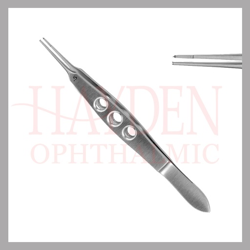Castroviejo Suturing Forceps 1x2 Teeth, .3mm, with 5mm tying platform, three hole flat handle, 106mm overall length, stainless steel